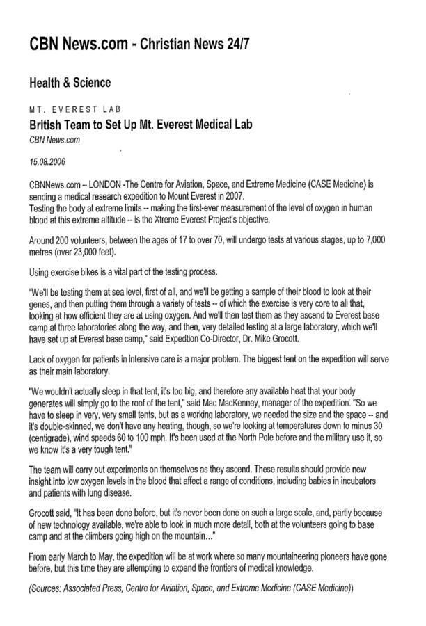 The 2007 Everest Medical Research Expedition booklet