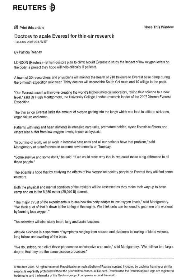 The 2007 Everest Medical Research Expedition booklet