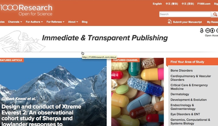 F1000Research is an Open Science publishing platform for life scientists, offering immediate publication and transparent refereeing, avoiding editorial bias and ensuring the inclusion of all source data.